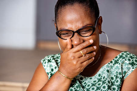 Working woman concept a working woman coughing after contacting with many people while working without any protection.