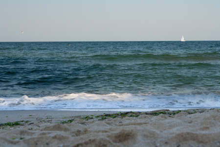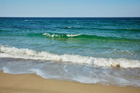 beach and sea. Coastal line, small waves on a clear day