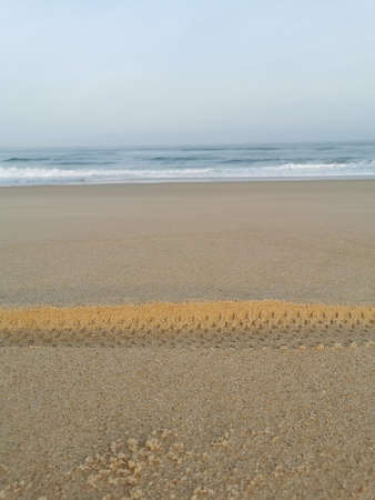 traces of car tires on the beach