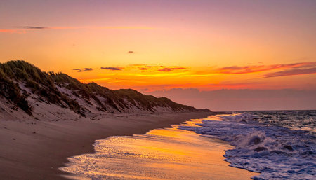 Sunset on the empty beach, Cape Cod, USA