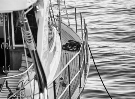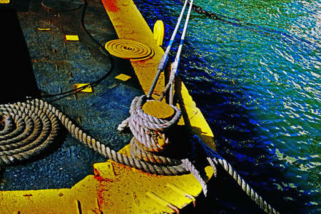 Ship's ropes on the yacht in Ligurian Sea, Italy. Close-up of a mooring rope