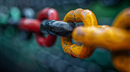Links showing close-up of heavy metal chain links. High resolution image suitable for commercial use. Clear details and vibrant colors enhance visual appeal.