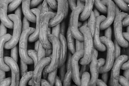 A closeup of big heavy iron chain of anchor
