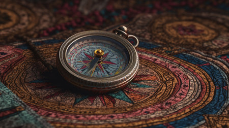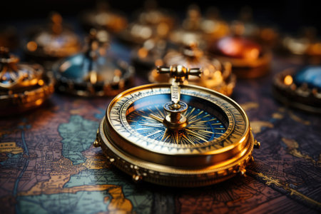 A close-up shot of a vintage compass resting on an old map, symbolizing exploration, travel, and the spirit of adventure.