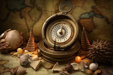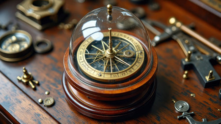 Marine Compass, Navigational Compass, Sextant, Compass Rose. Generative Ai