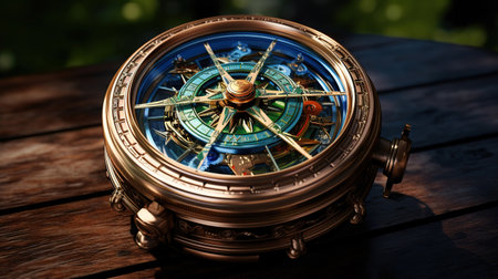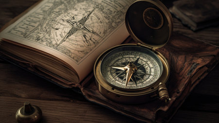 Antique brass compass resting on a rustic wooden surface representing the enduring significance of navigation tools in the pursuit of knowledge This timeless object evokes a sense of history