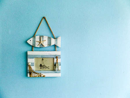 fish and picture frame hang on aqua light color wall