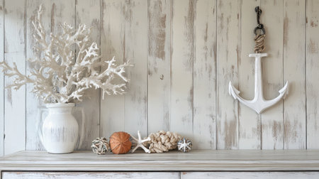 coastal home interior with nautical theme, including rope and wooden accents, created with generative ai