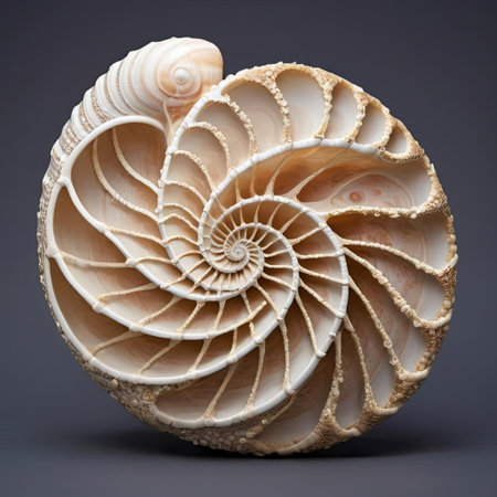 Nautilus shell Fibonacci symmetry cross section spiral structure growth golden ratio concrete rock stone