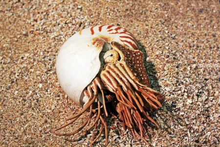 nautilus shell on the seashore, close-up