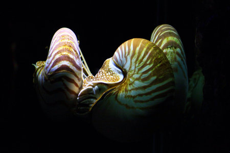 Nautilus shells on black background.