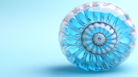 This image features an abstract fractal shell pattern, showing intricate details and captivating blue hues. The spiral structure evokes the beauty of natural shell formations.