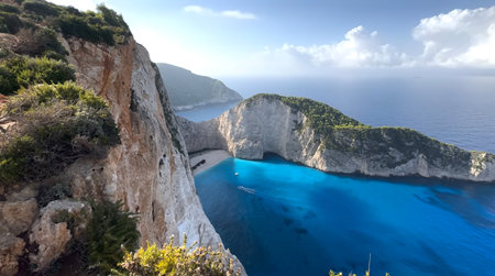 Stunning view of turquoise waters and cliffs at Zakynthos in Greece during a sunny day