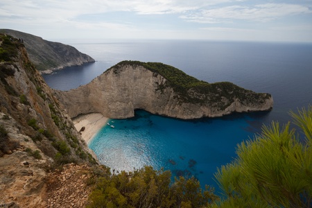 Zakynthos shipwreck beach. Navagio Bay seen from above. Important tourist attraction.
