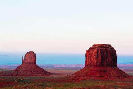 The Mittens rock formation at sunset in the Monument Valley in Arizona.