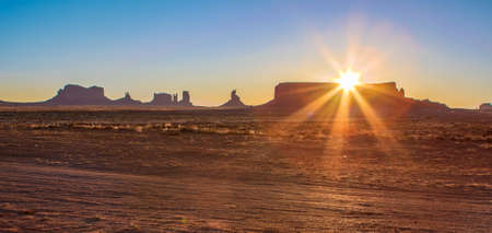 Unique Buttes in Monument Valley in Utah State, USA. Horizontal Image Composition. Sunlight Effect Used