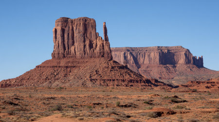 East and West Mitten and Merrick Butte at Monument Valley Navajo tribal park on a clear day