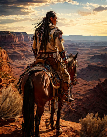 Native American on horseback overlooking canyon