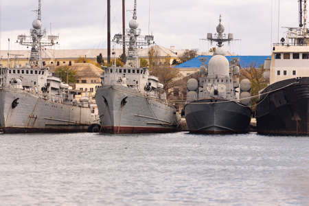 Russia. Sevastopol. December 2020. The arrested Ukrainian ships in Sevastopol. A number of old warships. Ukrainian ships in the Streletskaya Bay of Sevastopol.