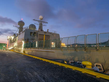 Bergen, Norway - February 12, 2017: Navy ships in the port of Bergen at night