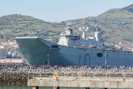 BILBAO, SPAIN - MARCH / 23/2019. The aircraft carrier of the Spanish Navy Juan Carlos I in the port of Bilbao, open day to visit the ship.