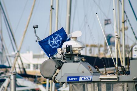 Tel Aviv Israel February 08, 2020 View of a police boat in the marina of Tel Aviv in the afternoon