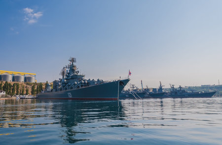 SEVASTOPOL, UKRAINE - AUGUST 13, 2011 - The military ship in the naval bay of Sevastopol on 13 of August, 2011.