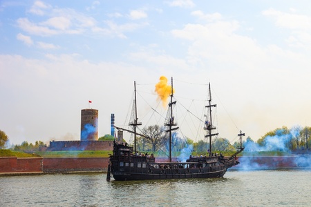 GDANSK, POLAND - MAY 5: Reconstruction of the Sea Battle - Armed galleons attacking the fortress Wisloujscie, May 5, 2012 in Gdansk, Poland.
