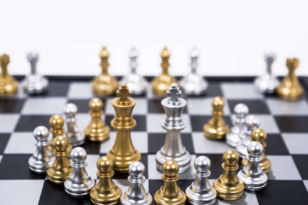silver and gold chess on the board.Business investment finance marketing planning concept.