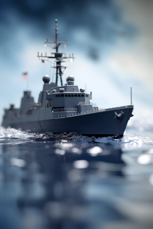 Modern naval warships conducting military training exercises in the vast expanse of the open sea