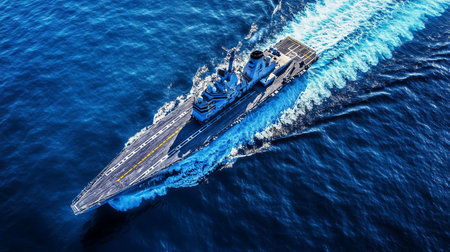 Aircraft Carrier At Sea Aerial View Of Naval Power And Maritime Security, Military Theme
