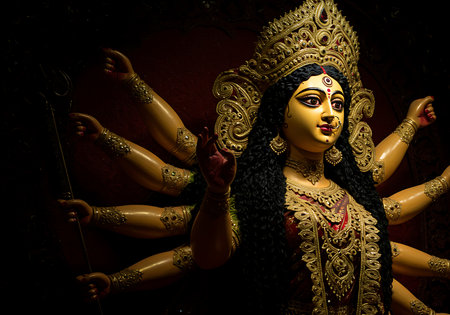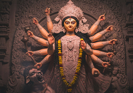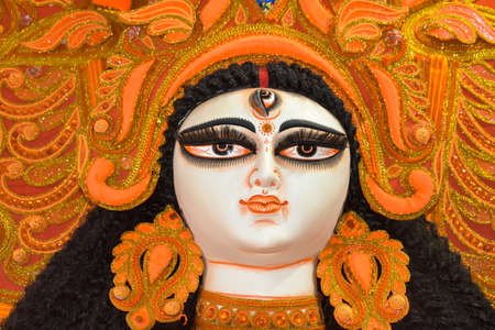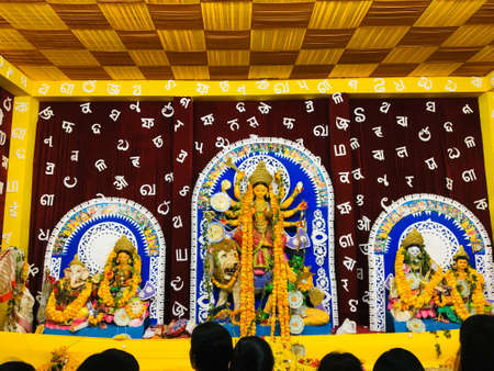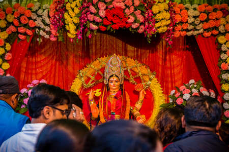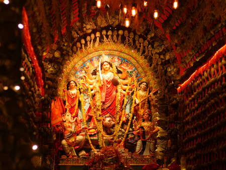 An idol of Goddess Durga decorated in Pandal. Durga Puja is a significant religious festival of Hinduism and for Bengalis, now celebrated worldwide.