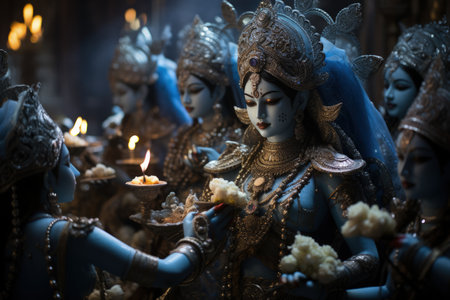 close-up of colorful statue of hindu deity in temple, created with generative ai