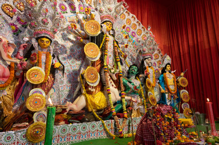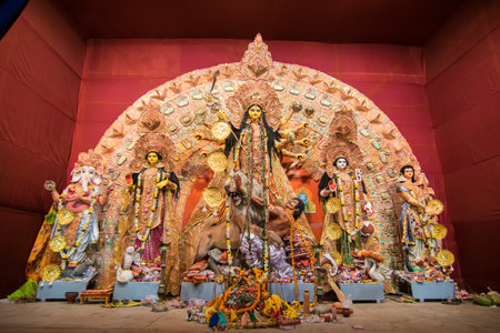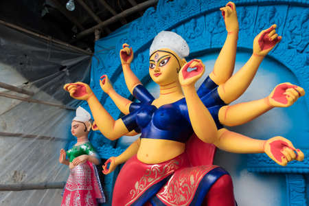 Idol of Durga godess during the durga puja festival of West Bengal, India