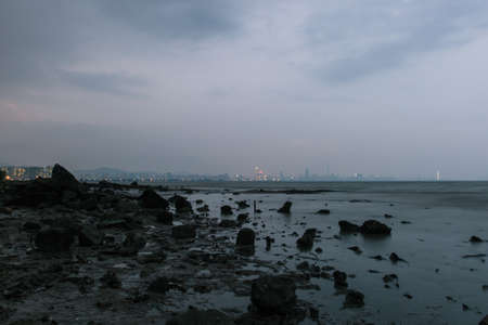Landscape on Georgetown on Penang island in Malaysia. Beautiful seascape and harbor during surise taken from ferry.