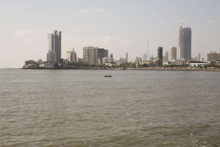 Mumbai city from Marine Drive, indian ocean in foreground.
