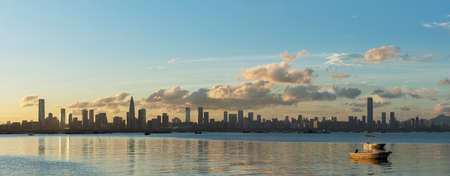 Skyline of Shenzhen city, China. Viewed from Hong Kong border Lau Fau Shan
