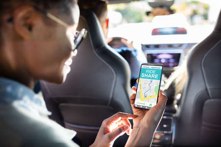 Miami, Florida- December 2018: Cellphone used as GPS monitor of an Uber car in Miami.