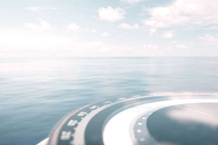 Compass on ship boat blue summer sea ocean day with bright sky. Marine cruise background banner.Shipping industry concept.