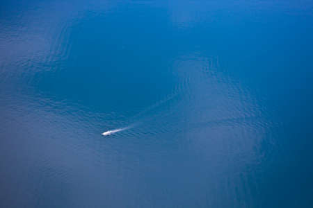 Vivid natural blue sea waves boat trail background