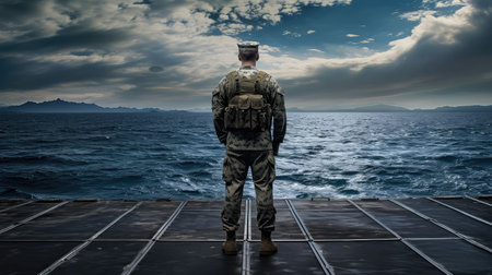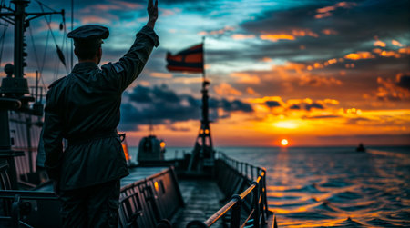 Sailorof a warship at sunset