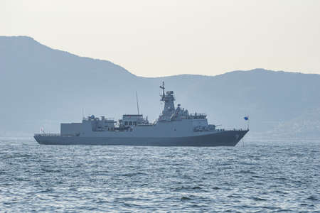 GEOJE, SOUTH KOREA - OCTOBER 20, 2018 : Nampo-class minelayer, HDM-4000 or MLS II-class is a new class of anti-submarine warfare minelayers for the Republic of Korea Navy