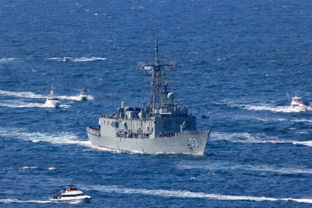 Sydney, Australia - October 4, 2013: HMAS Sydney (FFG 03) Adelaide-class guided-missile frigate of the Royal Australian Navy.