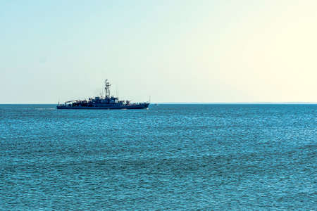 Military ship in the sea. Warship patrols the sea waters