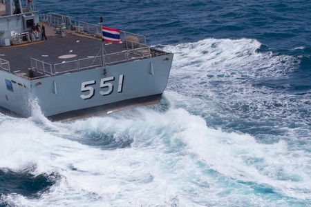SATTAHEEP, THAILAND - June 21: H.T.M.S. Krabi, an offshore patrol vessel of the Royal Thai Navy test control system and speed test on June 21, 2013 in Sattaheep, Chonburi, Thailand.