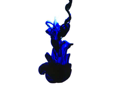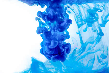 Colored acrylic paints in water. Blue watercolor ink in water on a white background. Blue cloud of ink on a white background. Abstract background. Drops of blue ink in water.