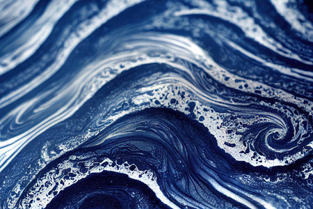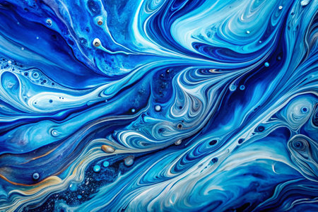 Blue foamy water swirl and marine wave flowing liquid motion abstract background. Fluid art resin epoxy craft acrylic painting technique with trendy dynamic effect design