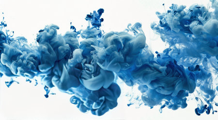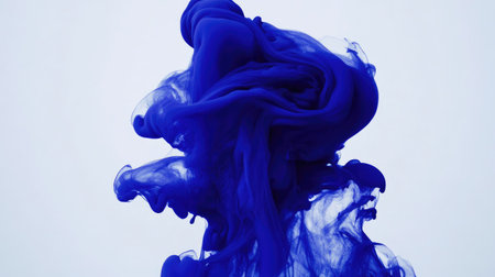 A mesmerizing abstract image of blue ink swirling in water, creating ethereal shapes and patterns against a light background. Ideal for artistic projects.