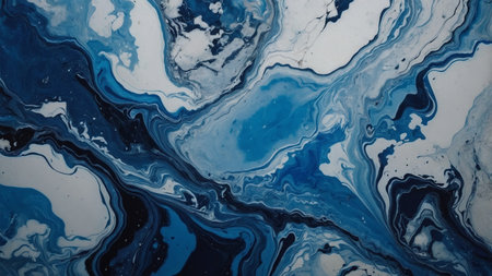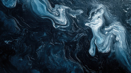 This captivating abstract fluid art features dark blue and white swirls conveying movement and depth, perfect for artistic projects or modern decor.