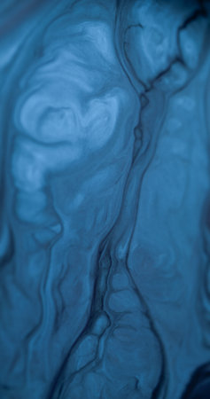 Wet marble. Ink blend. Blur blue white color shimmering texture liquid acrylic emulsion flow wave decorative dark abstract art background.